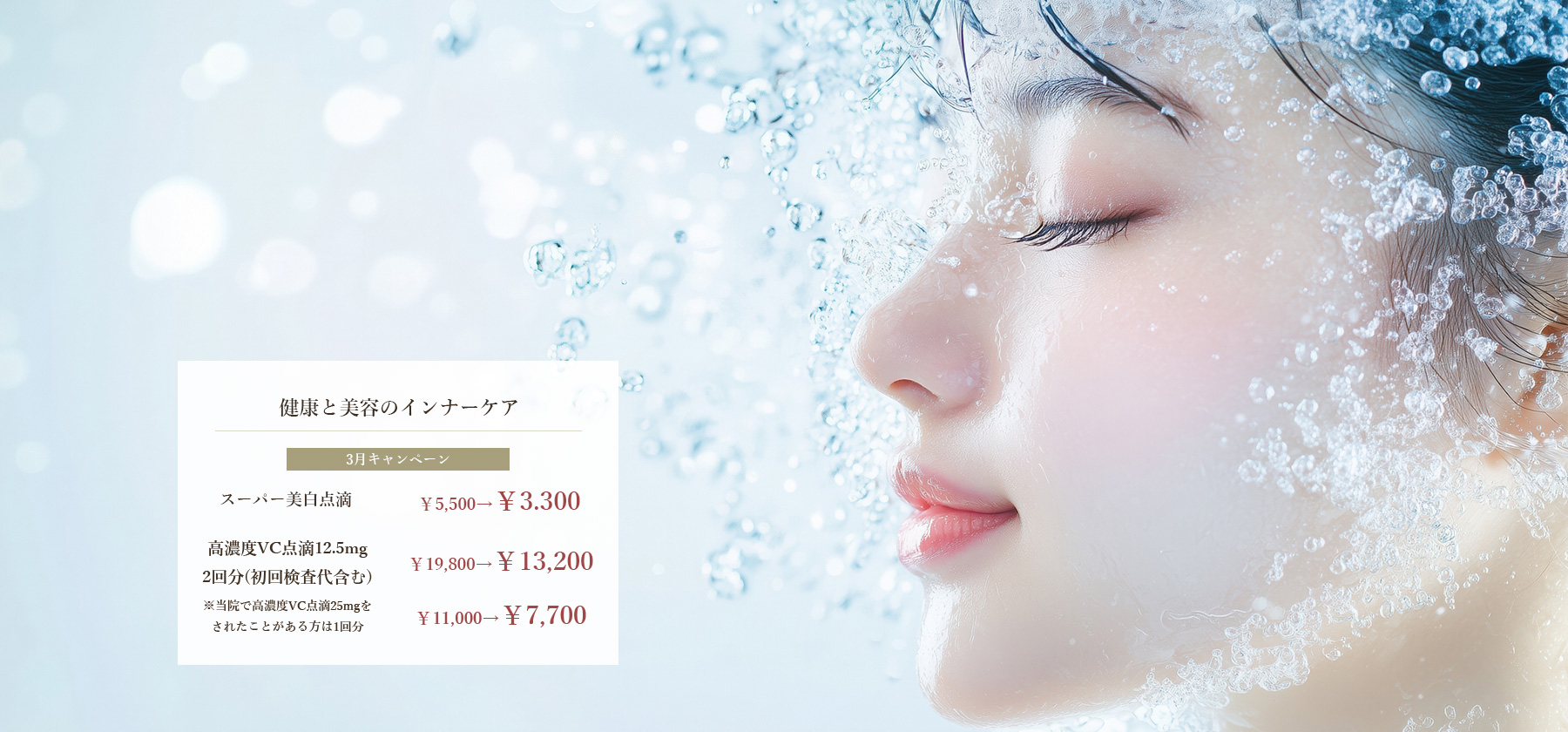 シミ、シワ取りだけでなく、患者様の美容に関するお悩み全般に、身体の内・外からアプローチし、健康的な美しさの実現を目指します。